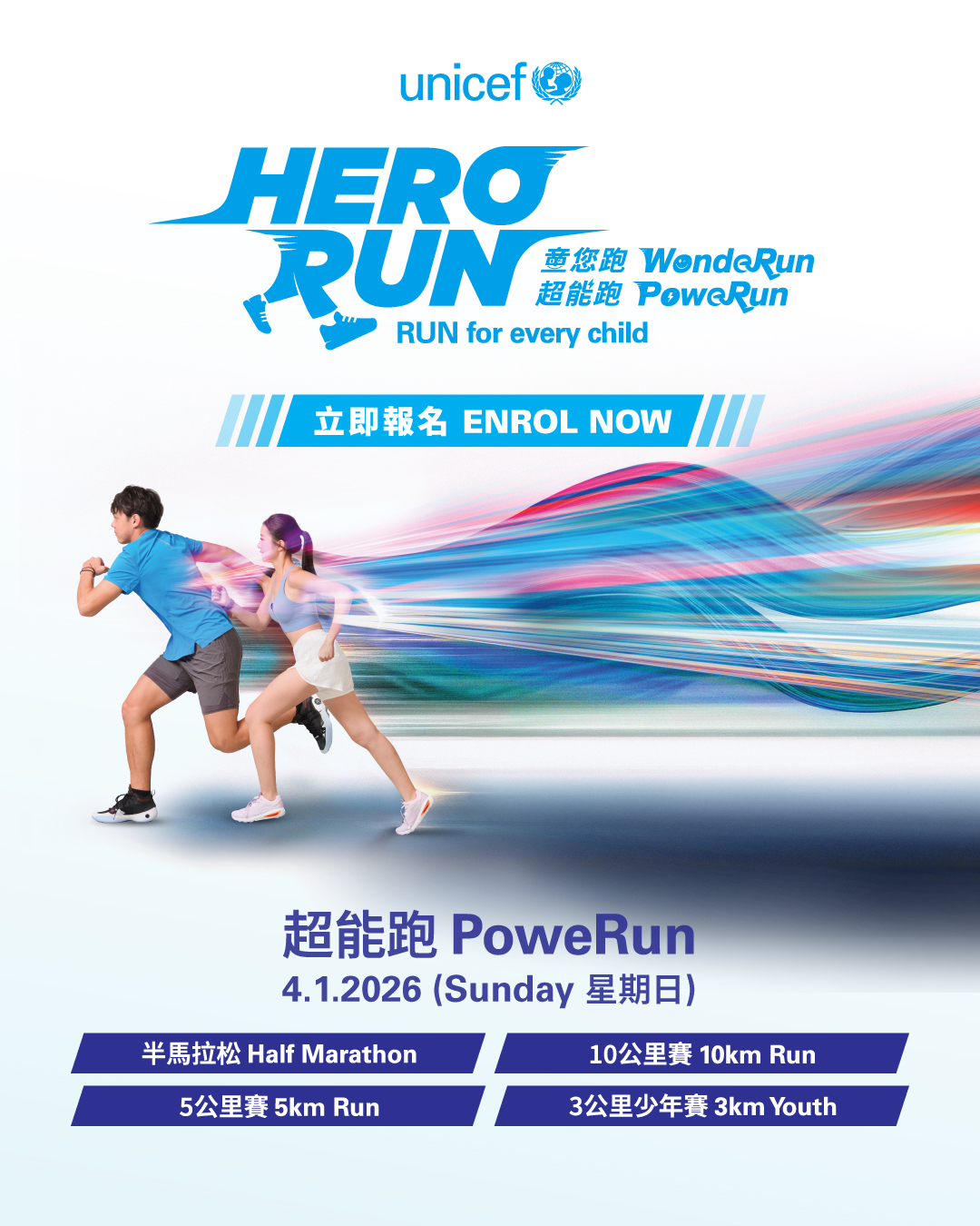 一年一度「聯合國兒童基金會慈善跑」(UNICEF HERO RUN) 現已接受報名,號召全城英雄出動,用行動守護全球有需要兒童的未來。這項為期兩天的慈善盛事,旨在透過跑步的方式,為因貧窮、戰亂、甚至極端天氣而失去學習機會的兒童籌集善款,幫助他們重建充滿希望的未來。