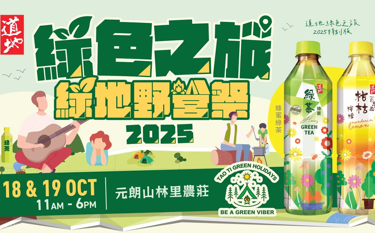 道地綠色之旅(Green Holidays) 再度聯乘本地野營達人,一連兩日於10月18至19日,在逾十萬呎的元朗山林里農莊攜手打造「道地綠地野營祭2025」的年度盛事,誠邀大家遊走大自然,投入連串好玩刺激的綠地及美食體驗之旅!活動邀請到人氣歌手吳林峰、Pandora樂隊及City Echo,以音樂洗滌心靈伴你放空;野外料理達人帶領綠地野炊,讓你深入體驗原始野外烹飪魅力;更可即場DIY獨一無二的露營裝備及免費主題互動玩樂區。另外,凡購買指定VIP門票,即送你NAT GEO RUN HK 2025 x National Geographic|道地別注版禮品。無論你是露營新手或野外達人,都能在這場野營祭中找到屬於自己的綠地樂趣。