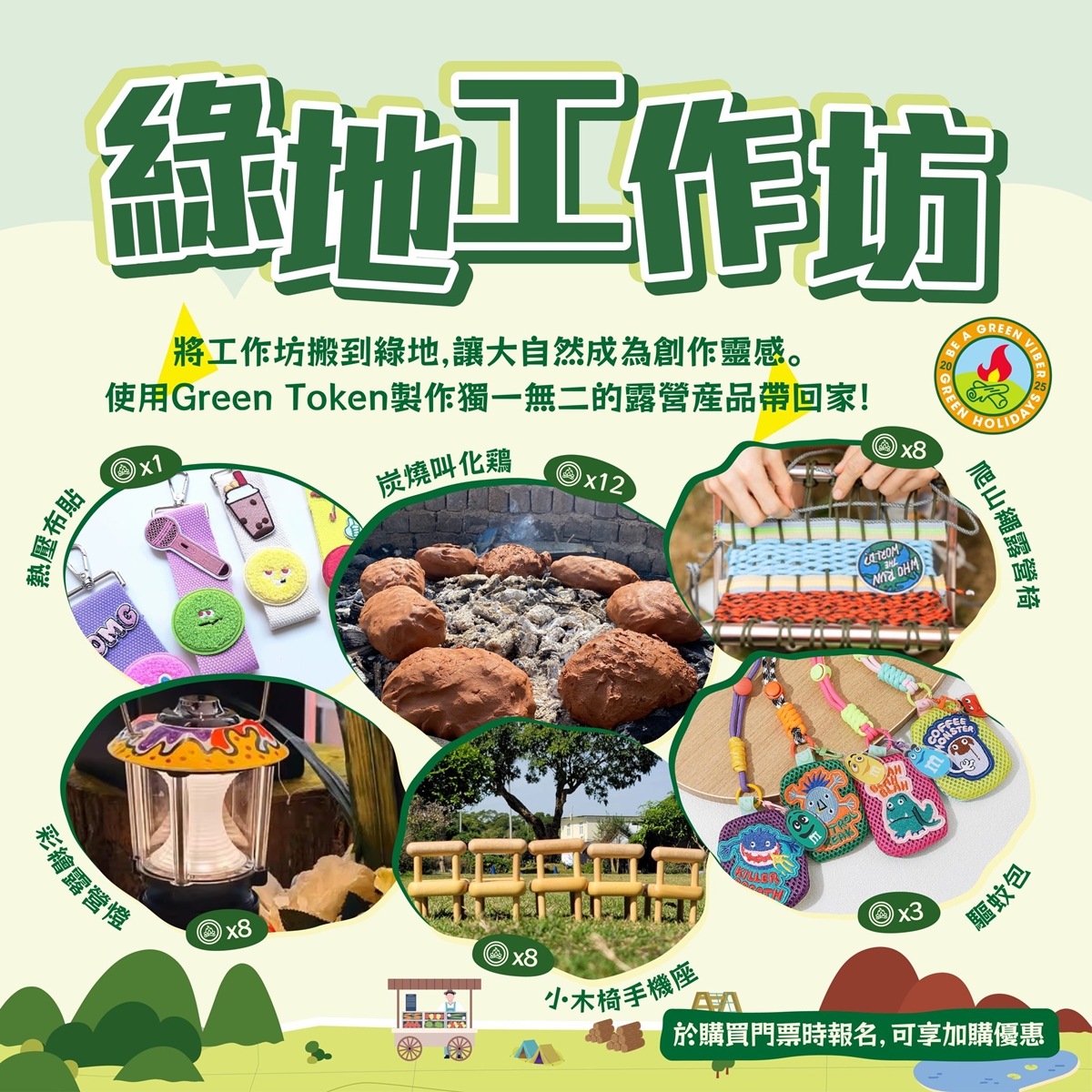 將工作坊搬到綠地,讓大自然成為你嘅創作靈感!由多位手作達人親自教導,讓你DIY製作獨一無二的露營裝備,包括小木椅手機座、彩繪露營燈及爬山繩露營椅等,實用又有紀念價值,為露營增添溫度與獨特回憶。