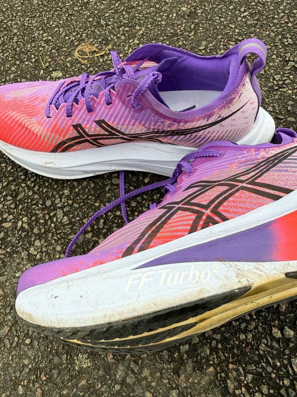 慢跑是沒有激烈的推進,所以沒有拖腳感。快跑 (4分-445 pace) 時,感覺比起有嵌入板材的 Sonicbalst 有更快的回彈,觸地的反應更高。而且由於中底全掌FF Turbo² 而沒有混入FF Blast Max,鞋身更輕,跑起來更有速度感。