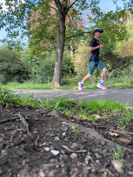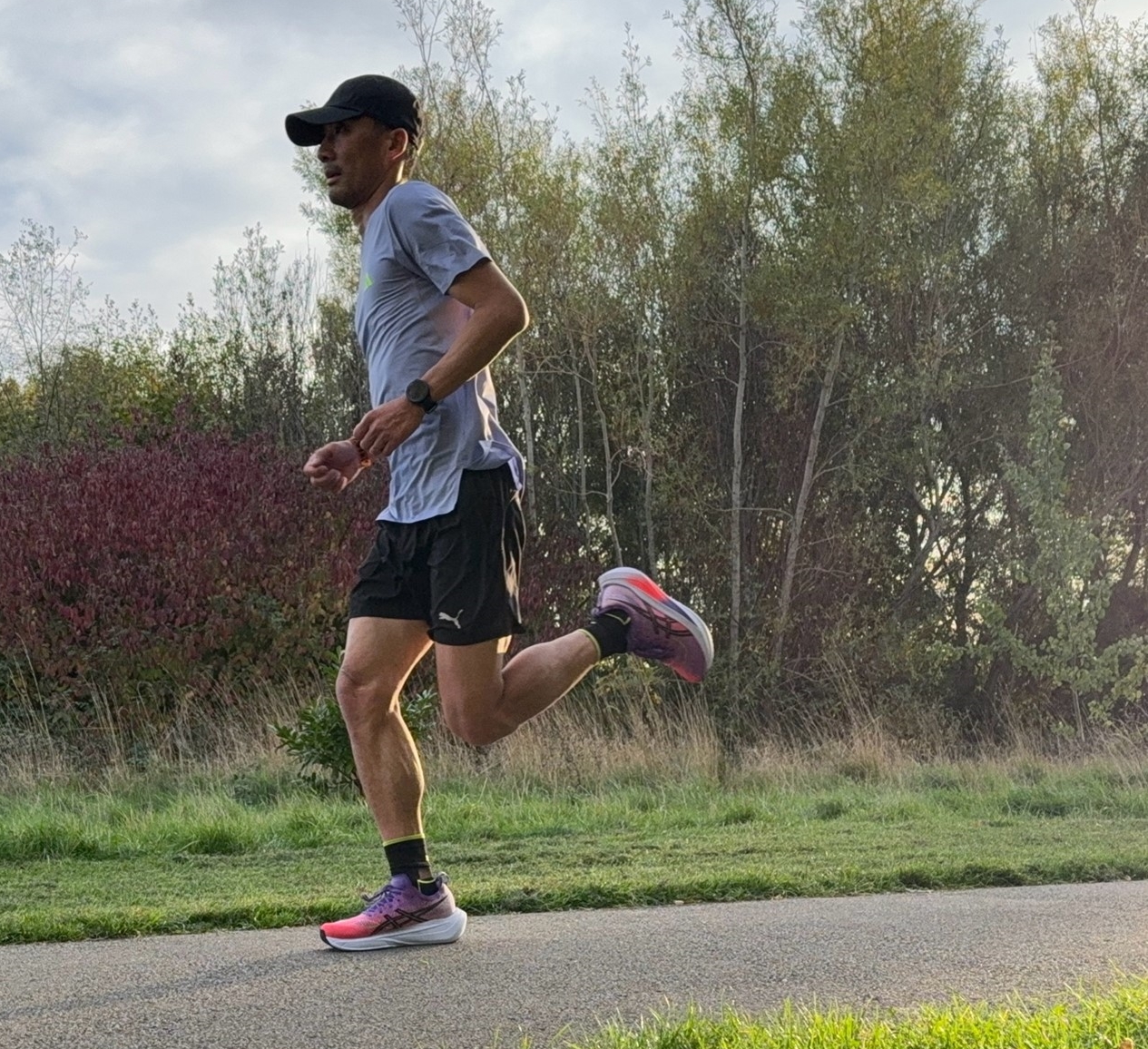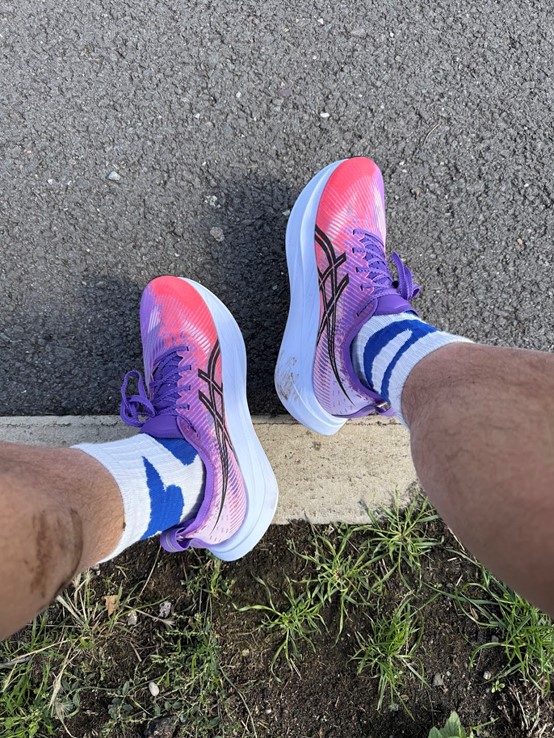 由於 45mm厚的中底,它仍屬於「極致緩震」類別,實跑時能清楚感覺到保護性。