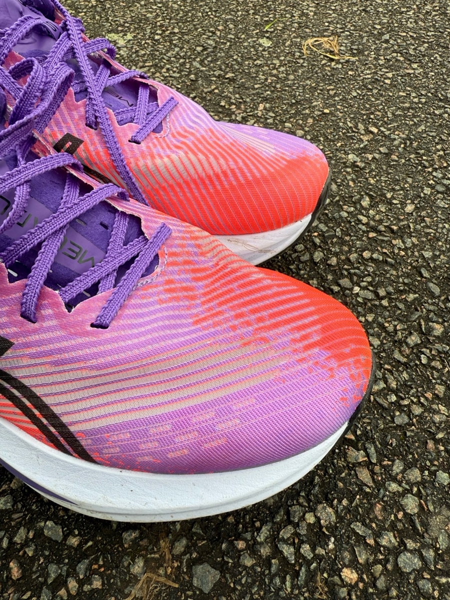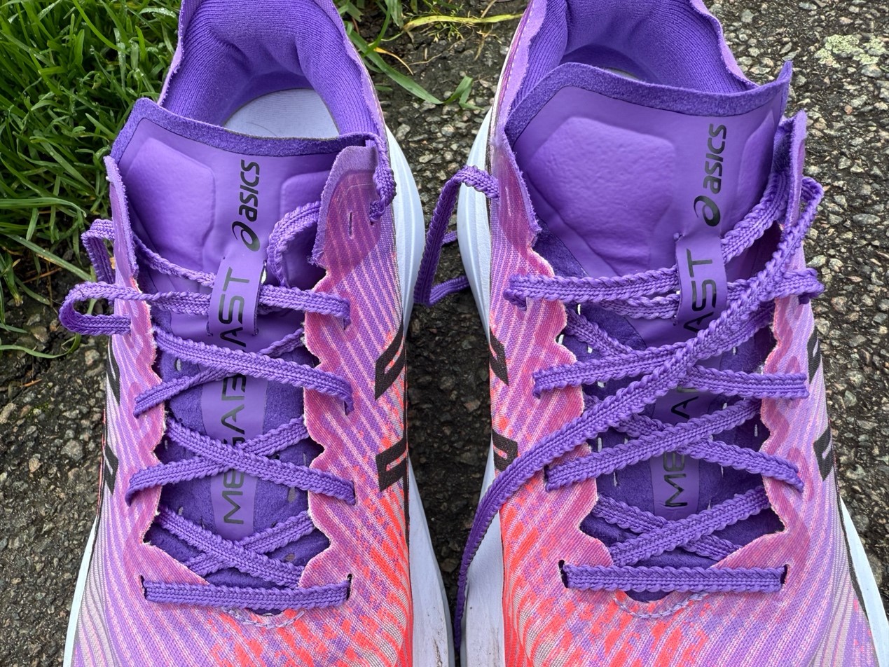 Megablast 和 Sonicblast 的鞋楦和鞋長設計是一樣,比其他鞋款如 Metaspeed Paris、Novablast、Kayano 不一樣,鞋頭楦位空間略低,內長偏長。鞋面向上弧起造成頂部有少少壓迫,長跑後可能會磨到腳趾。