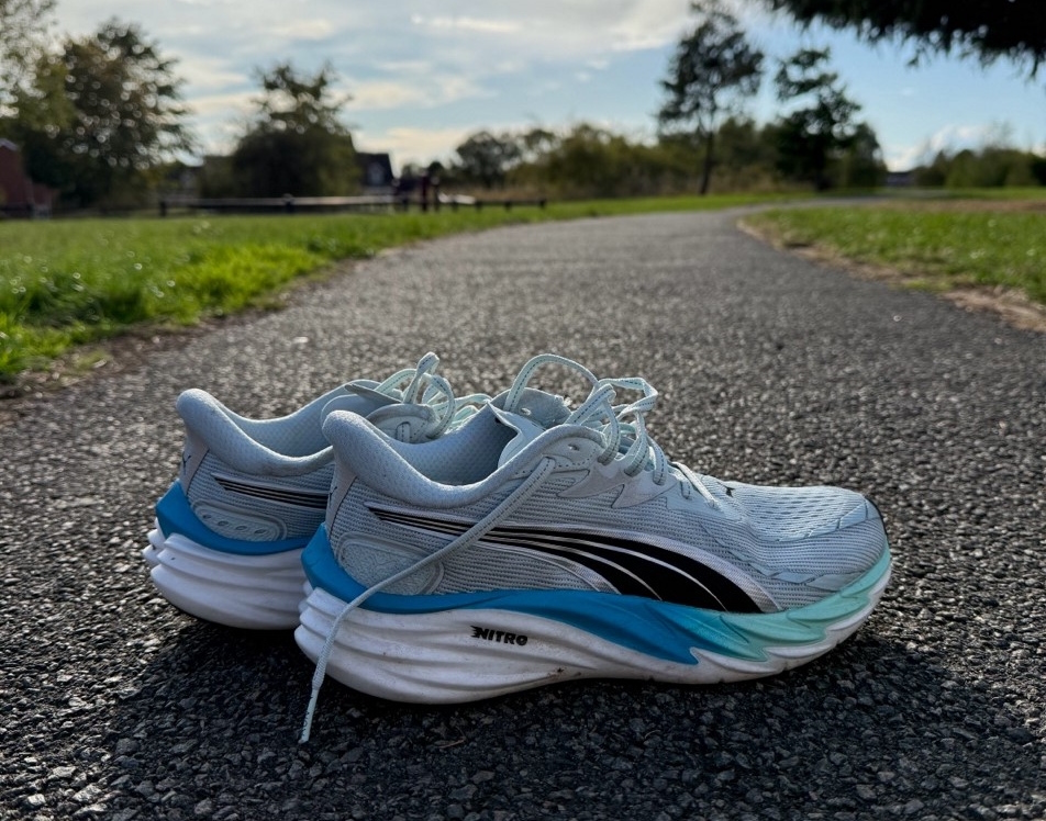 整體而言,Velocity NITRO™ 4 最大的特點是「平衡」:中底回彈適中,既不過軟也不過硬;長距離依然舒適;鞋面貼合緊密但不壓迫,腳跟鎖定良好;外底抓地力出色,特別適合英國這種時晴時雨的環境,濕滑路面表現令人安心。