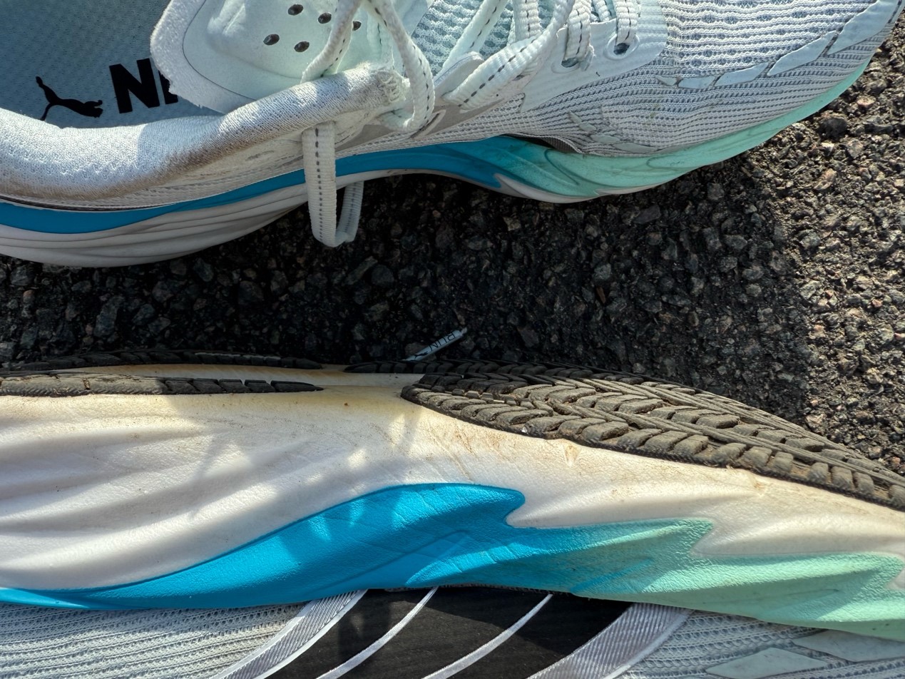 快跑時中底回彈明顯幫助雙腳拉起,表現不輸部分碳板鞋(suprshoes);但長時間 tempo(10K 以上)時,因缺乏碳板輔助穩定,會稍感疲勞,不過這正是訓練鞋應帶來的效果。