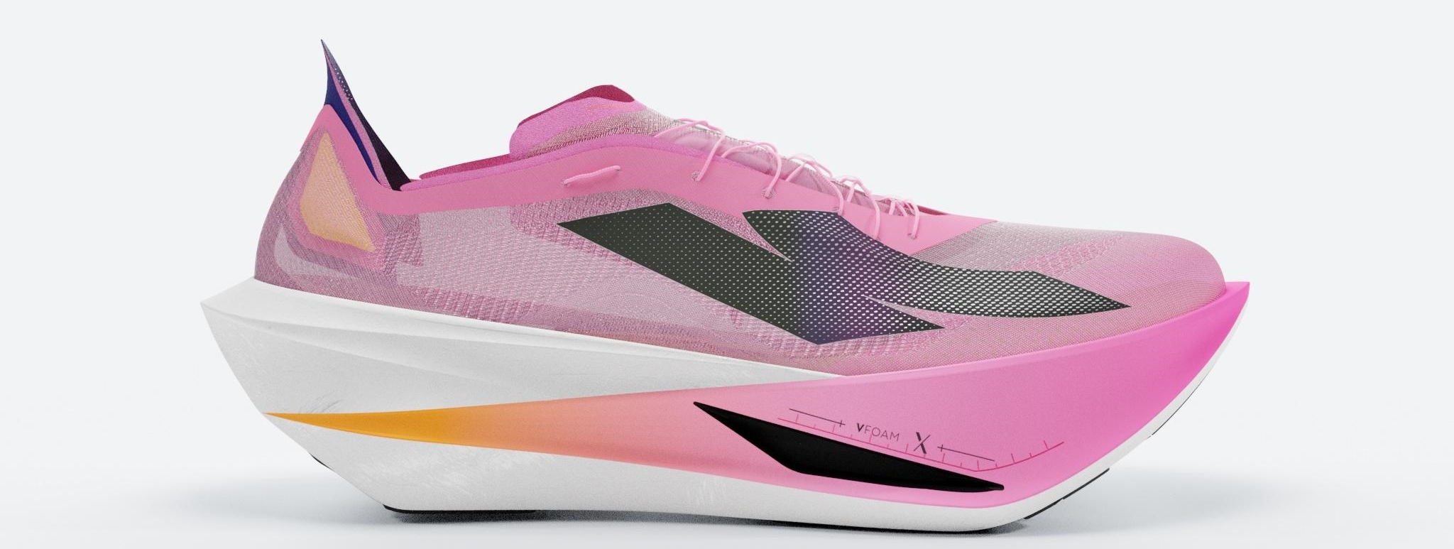 全新雙密度中底 FASTECH+採用 Vfoam Plus,結合高回彈 SCF ATPU與PEBA嵌 件,讓動能回饋較前代大幅提升13%,且重量減輕至210克。重新設計的碳纖 維板,透過精密力學設計減少蹠趾關節彎曲,增強長距離奔跑時的穩定性及效 率。搭配一體成型的Sockfit 全針織無鞋舌襪套設計,能極致減少磨擦並預防細 微損傷,成為法國紀錄保持者 Méline Rollin 等頂尖運動員在國際賽場上突破個 人極限的好拍檔。