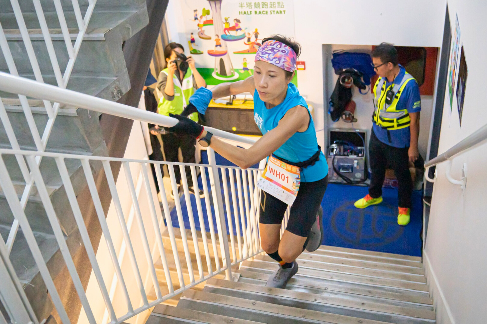 不久後,Corinna 在棧道比賽中拿下第四名。她謙說參賽者不多,但對自己而言,那是第一次清楚感受到努力帶來的改變。從那之後,開始參加更多比賽。有次到澳門旅行,覺得行程太過輕鬆,便報名旅遊塔樓梯賽——61 層、1298 階,並在自家樓梯進行近乎自虐的三週訓練。