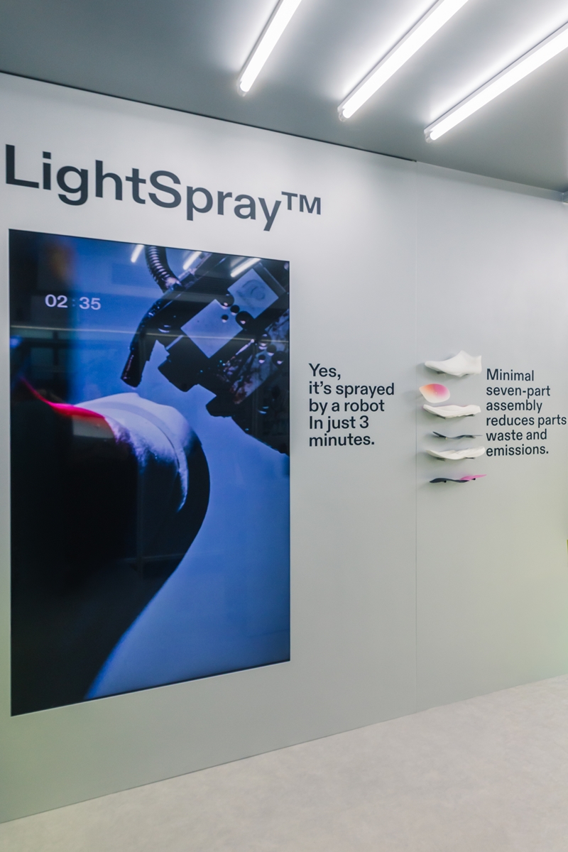 LightSpray™ 由瑞士蘇黎世總部的 On Labs 創新團隊研發,高性能鞋面噴織技術由 On Labs 獨創的機械臂進行獨立自動化噴織,突破性以 3 分鐘一體化製成高性能、僅 30 克的輕量鞋面。這種更為高效的製鞋工藝不但可以大幅減少生產廢料,相比 On 其他競賽跑鞋的鞋面生產模式,減少約 75% 碳排放量,該技術的推出標誌 On 正在邁向製鞋的全新未來,不僅是 On 一個重要里程碑,更徹底改變了行業標 Cloudboom Strike LS 是 On 首款採用由 LightSpray™ 精密噴織超薄鞋面高性能競賽鞋款,鞋重量僅為 170 克,成高性能的輕量鞋面。LightSpray™ 的無膠粘合技術促使Cloudboom Strike LS 的結構更加精簡,無鞋墊和鞋襯設計,僅由 7 個組件組成,即零距離接觸 Helion™ hyper foam 超彈泡棉中底材質,從而減少跑步時的能量損耗,能有效增加地面接觸面積,確保跑者在比賽中達至最佳表現。