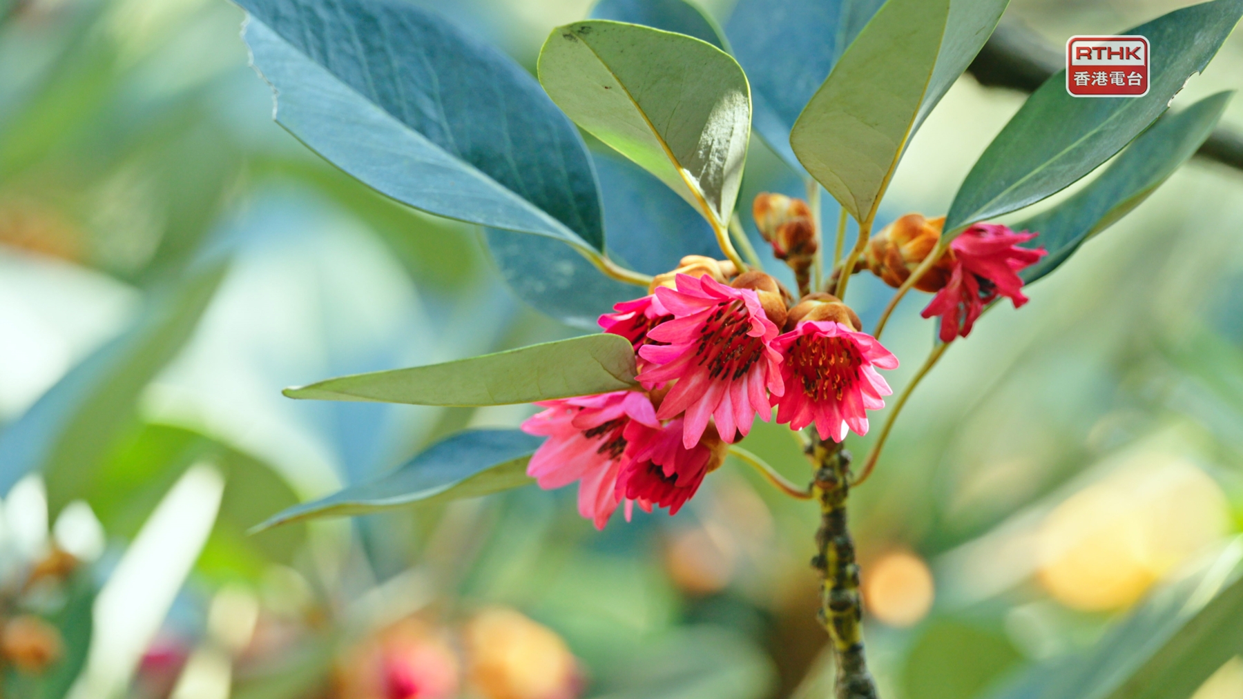 紅花荷常見於香港山林之間,是少數寒冬開花的常綠樹。其懸掛枝頭的假頭狀花序形態似吊鐘花,因而亦有「吊鐘王」的稱號。