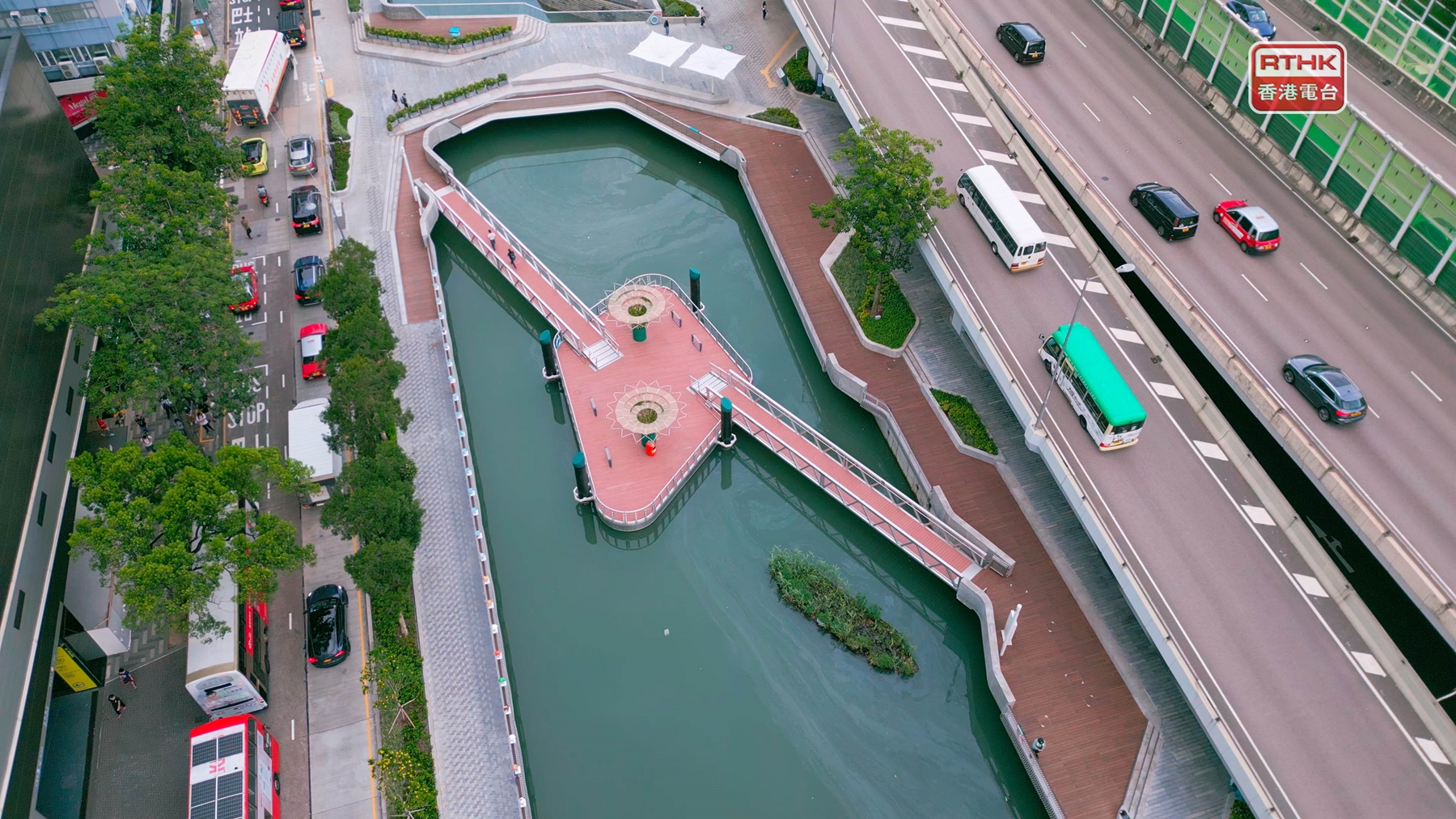 觀塘翠屏河前身是一條明渠,經過河道活化計劃後,增添鳥竿、生態浮牀和園境等生態元素,是城市發展與「藍綠建設」配合的設計。