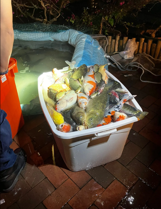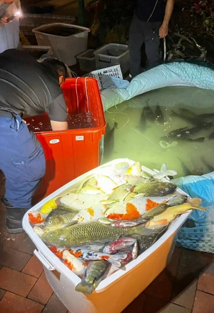 愛護動物協會督察及警方接報後趕抵現場。經初步點算,證實共有114條魚死亡,當中包括不少錦鯉。其餘82條魚及4隻烏龜雖僥倖生還,但部分健康狀況令人擔憂。