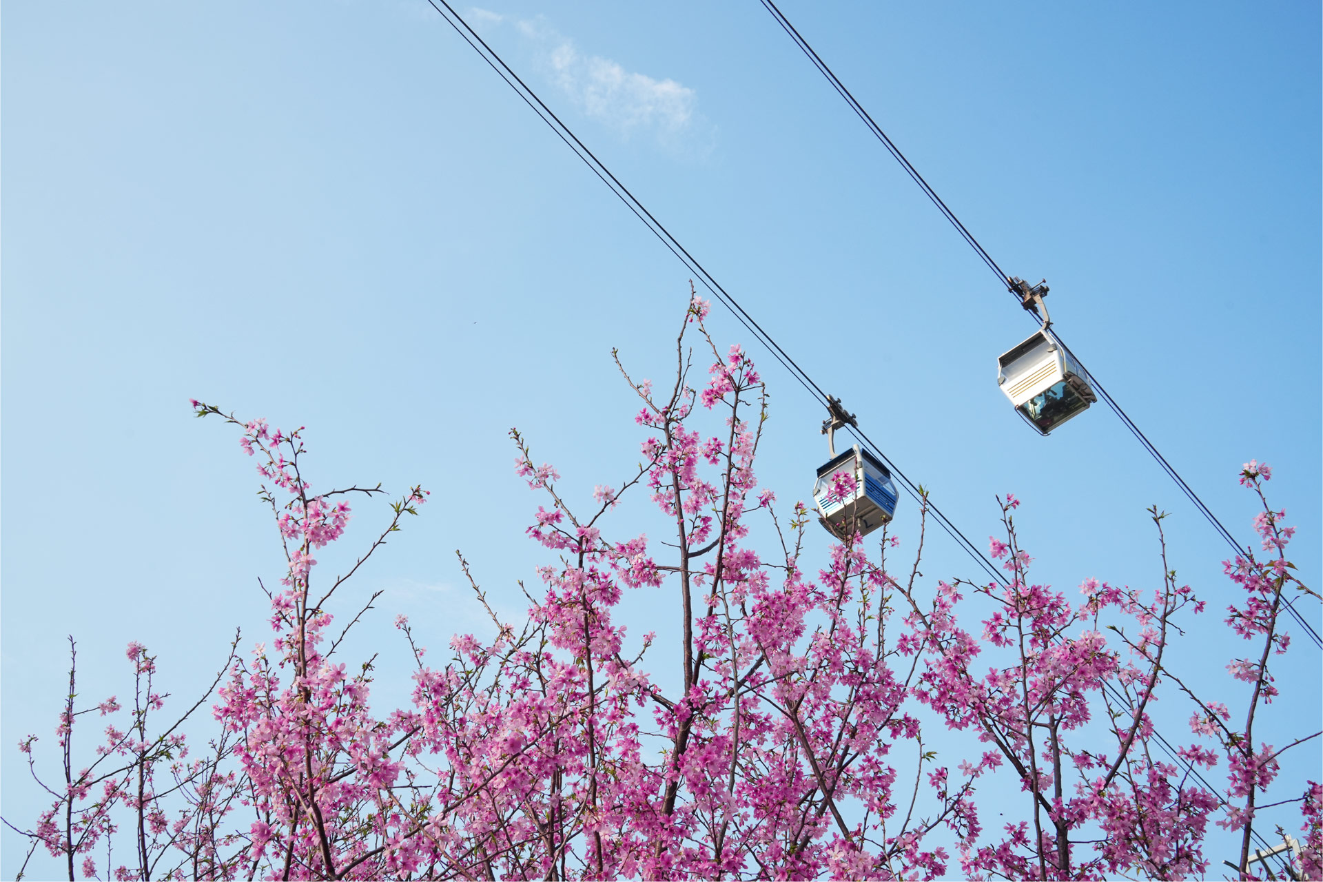 以往市民前往園區需橫過馬路,新路徑開放後,市民可沿赤鱲角南路直達,全程步行約15至20分鐘,路程不僅縮短約200米,安全性亦大為提升。此外,園區設計特別考究,市民在賞花之餘,可以起伏的山坡為襯托,捕捉「櫻花與昂坪纜車同框」的經典畫面。