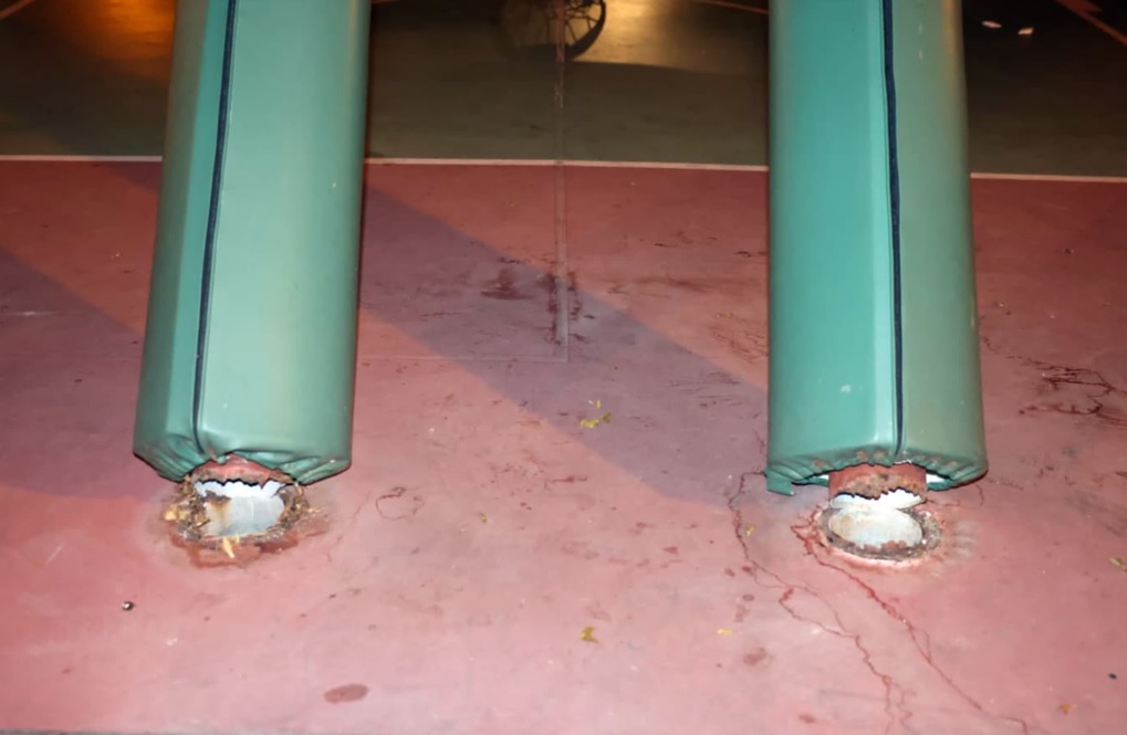 土瓜灣昨1月4日晚發生驚險意外,一名20歲青年在靠背壟道遊樂場打籃球時,籃球架疑因底座嚴重銹蝕突然倒塌,青年避閃不及被壓中送院。事件引起市民對康文設施安全憂慮。有記者走訪多區球場,發現其他地區的籃球場亦有籃球架明顯銹蝕,設施老化問題或非個別事件。
