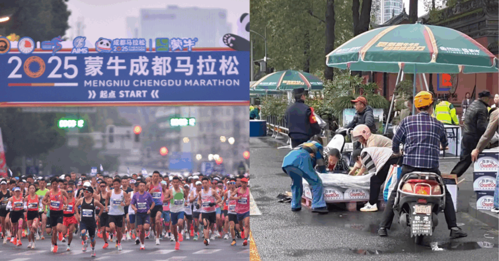 2025-10-312025成都馬拉松市民強搶剩餘補給物資 | 出動汽車成箱搬走 保安勸阻無效