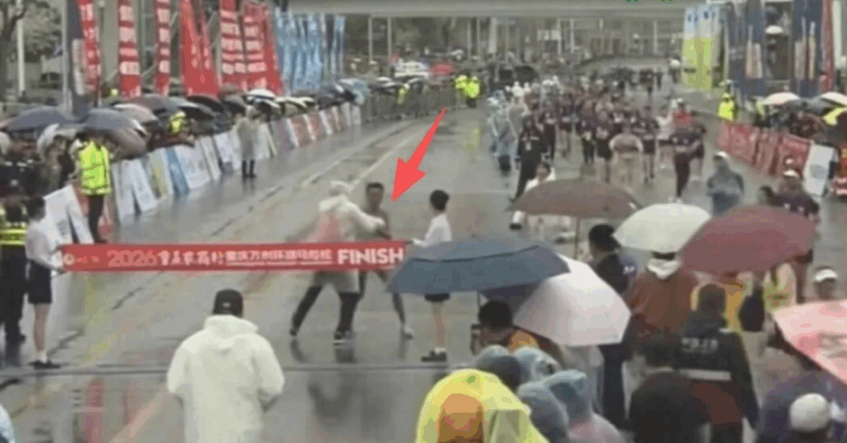 重慶萬州馬拉松冠軍選手衝線遭暴力阻撓 | 賽會: 工作人員眼鏡有水珠認錯人