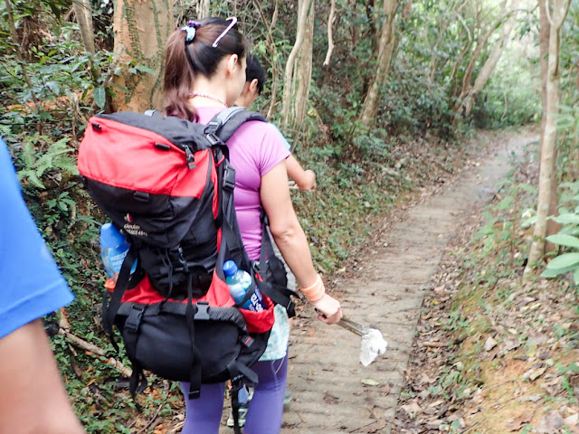 到得我們接上了麥理浩徑,我手上收集到的垃圾已有大半袋滿,而且種類繁多,膠樽、膠袋、紙盒與零食包裝袋等各適其適。