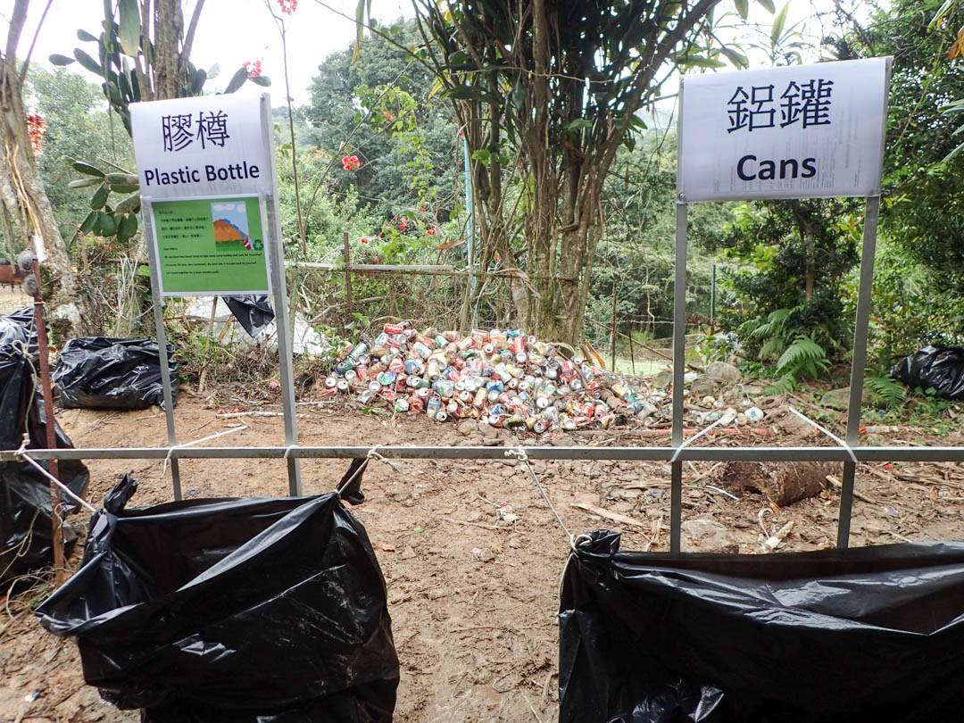 也看到堆在士多門前,今天我們要嘗試處理掉的「鋁罐山」。老實說,當我在士多裡吃著熱燙餐蛋麵,喝著冰涼酸梅湯,再打量著面前這座大山時,我是沒信心大家能將它一次過清理掉的,但即使無法一次過搬下山,我們也要先將鋁罐打包,待日後再搬運。