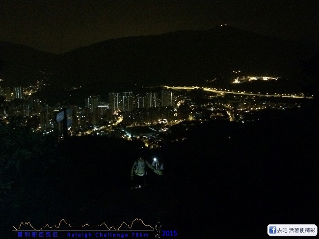 鉛礦坳之後的下山路既刺激又驚險, 尤其在夜間時份. 那一段石頭路可說是高危位, 必須加倍小心. 重回民居的新屋家大帶, 夜裡狗吠聲不斷. 經上碗窑上山至田寮下, 又是狗吠聲, 在寂靜的夜裡特別響亮. 除了大埔道, 太和及大埔頭一帶似乎是另一補給熱點. 因為飽食過後, 便要迎來下半場的難關: 九龍坑山與八仙嶺. 日間的九龍坑山景色怡人, 夜裡的燈光美景更是醉人, 可說是眼在天堂身在地獄. 在快要到山頂時迎來迴輪組折返的隊伍, 對於他們的體能與意志, 深表佩服.
