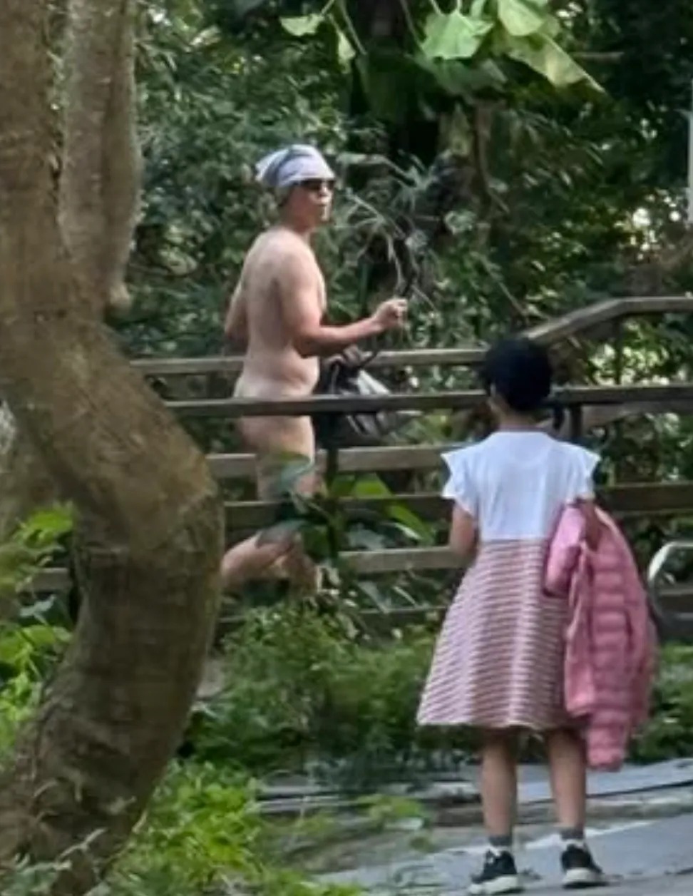 有網民在社交平台發布多張照片,顯示該名男子頭戴毛帽及墨鏡,頸部以下完全赤裸。目擊者估計該男子年齡約40歲,體型顯示有運動習慣。當時現場有三名女性登山客,亦有人發現他出現在新北市天上山登山步道。