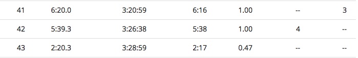 在我寫這篇網誌的時候,大會尚未有正式成績公布,所以我只能以 GPS 手錶上的紀錄來描述我當時的狀況。但 GPS 測距一般會較實際距離長,亦即是我的實際速度會比數據顯示的更慢。此時此刻,Sub-325 已經徹底泡湯,體能與信心都正在崩潰的我唯有努力保住 Sub-330 的成績了。由於早前在 30 公里處吞下的一包 Power Gel 令我感覺反胃,所以原定在 35 公里處會補充的另一包 Power Gel 便一直放在我腰包。但到我跑到 40 公里前,我的雙手手指都開始感覺冰冷,這對我來說是典型燃油快將耗盡的先兆。