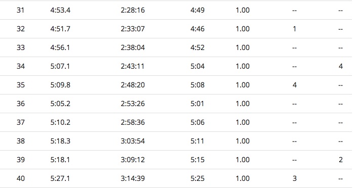 回說我在過去三個月修練的「Hansons 大法」,其中最具爭議的地方就是它的長課從不超過 26 公里,這對許多老於經驗,信奉 38 公里為馬拉松終極長課的跑手來講都是不可思議的。但 Hansons Method 的宗旨可不是教人練精學懶,它沒錯是將長課與一些耐力課的強度調低了,卻又同時提高了慢跑課(又稱恢復跑)的速度。譬如以我的目標時間來說,慢跑速度便要定在 5:28 – 5:52/km 之間,平均便是 Sub-4 時間的均速了。如此一來一回,整體訓練強度雖沒多少優惠,卻大大減低了練習受傷的機會。以我個人為例,從 8 月 7 日開操至賽前,我共跑了超過一千公里,這跟我往日參與訓練班時的訓練量相若,但往日在賽前經常困擾我的膝傷卻不翼而飛。