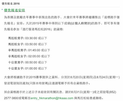 看到有跑友已收到渣打馬拉松主辦單位通知,2015比賽成績達標可優先報名,雖然我早已跟跑會經田總報了明年的全馬,但仍十分期待那則短訊。