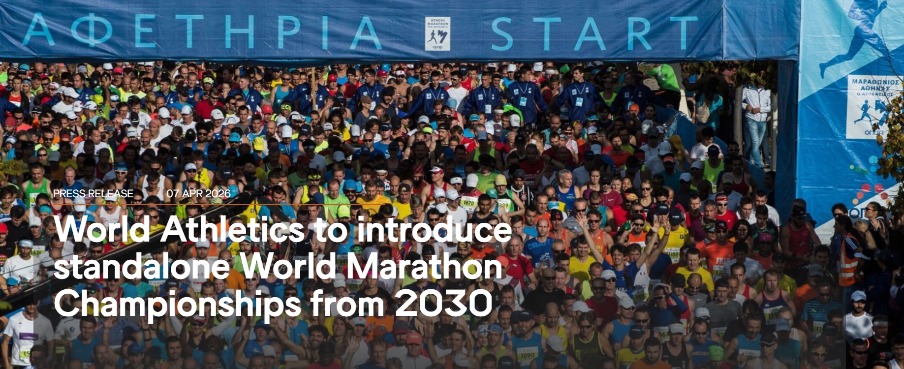 世界田聯 (World Athletics) 正式宣布長跑賽事大改革: 2030年起,馬拉松將正式脫離傳統的「世界田徑錦標賽」(World Athletics Championships),並成立專屬的單項賽事 —「世界馬拉松錦標賽」 (World Athletics Marathon Championships)。