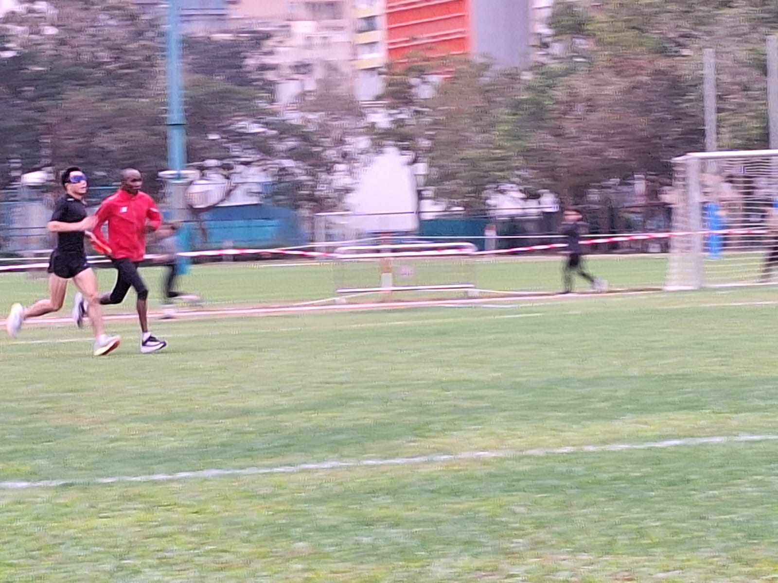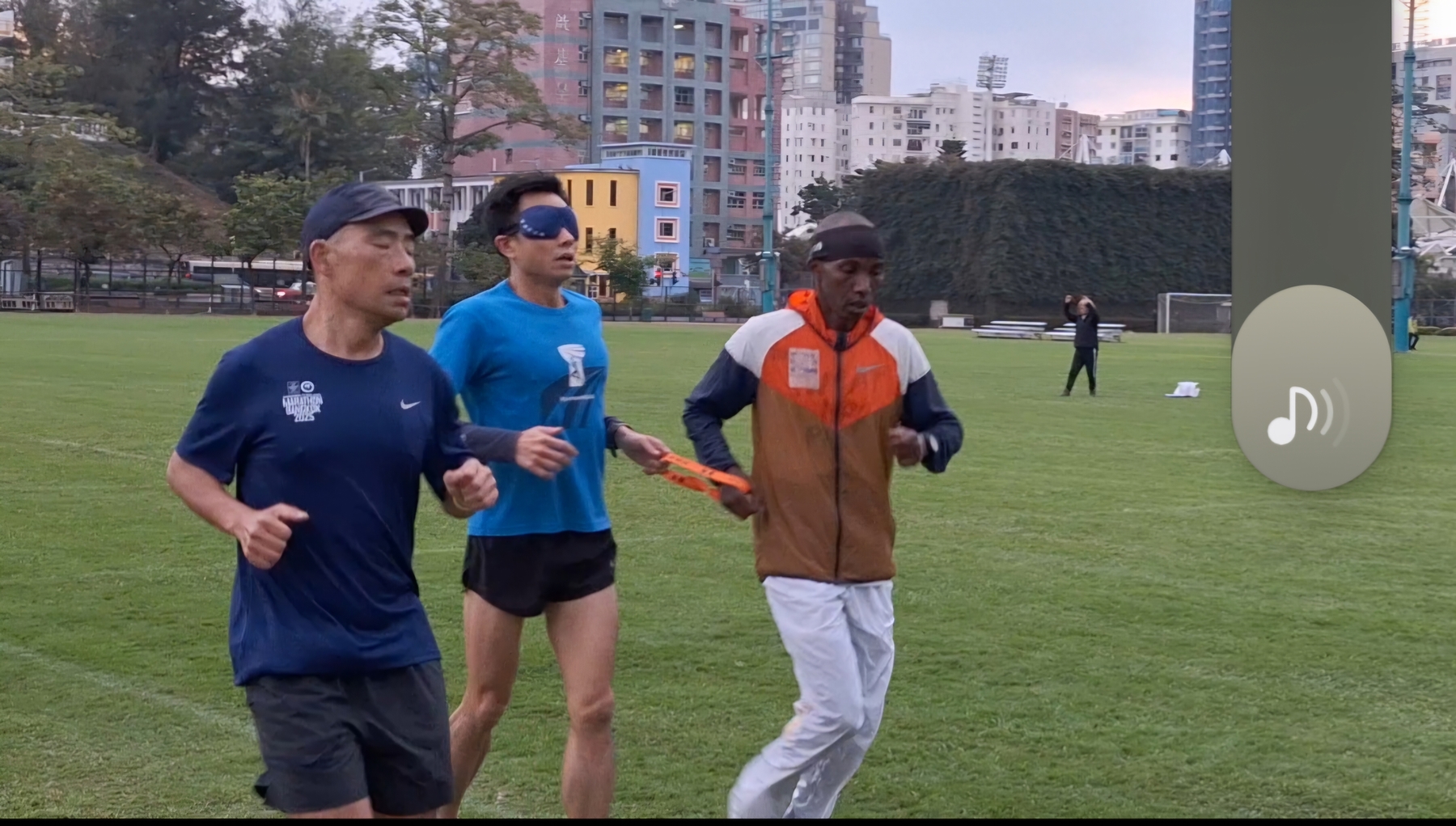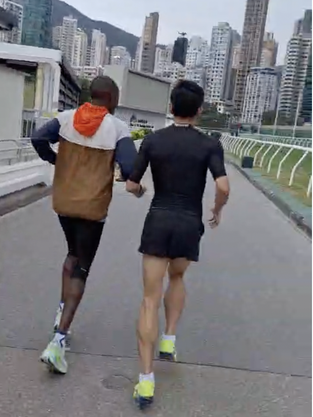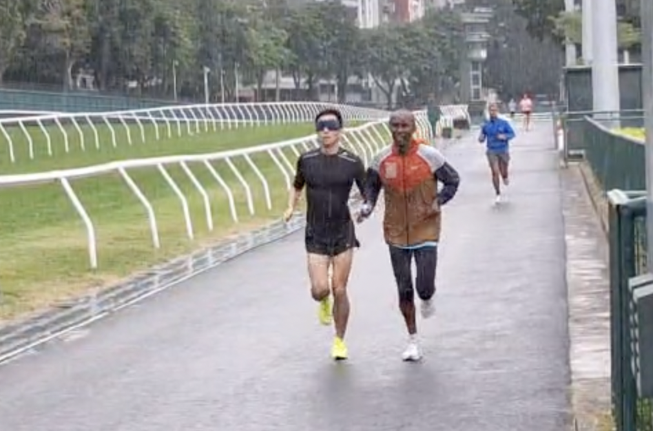 每年會由肯尼亞到亞洲參賽的職業馬拉松運動員Lukas,在12月中才到香港, Marco爭取時間與Lukas訓練和建立默契。第一次練習是在跑馬地練習。「理性上,我知道戴上眼罩後,我便要完全信任領跑的Lukas。速度提升的時候,我心裡的恐懼油然而生,害怕撞到人,撞到障礙物⋯⋯。腦海湧然出不同的憂慮。」Marco坦言,Lukas的聲音導航和提示,可以讓他安心一點點。「有時候,我太着緊執着手繩,忘記了擺手,以致跑起來和Lukas的協調性不夠。」