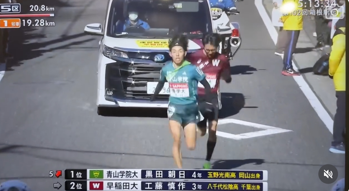 第 102 屆「箱根駅伝」(東京箱根間往復大學驛傳競走) 展開首日「往路」賽程。青山學院大學 (下稱青學大) 再次展現強大的韌性與斜路作戰能力,在第一區僅排名第17位的劣勢下,憑藉王牌黑田朝日 (Kuroda Asahi) 在第五區「攀登箱根山」的史詩級表現,最終以5小時18分08秒,同時刷新第五區間及往路紀錄,亦達成往路三連霸。