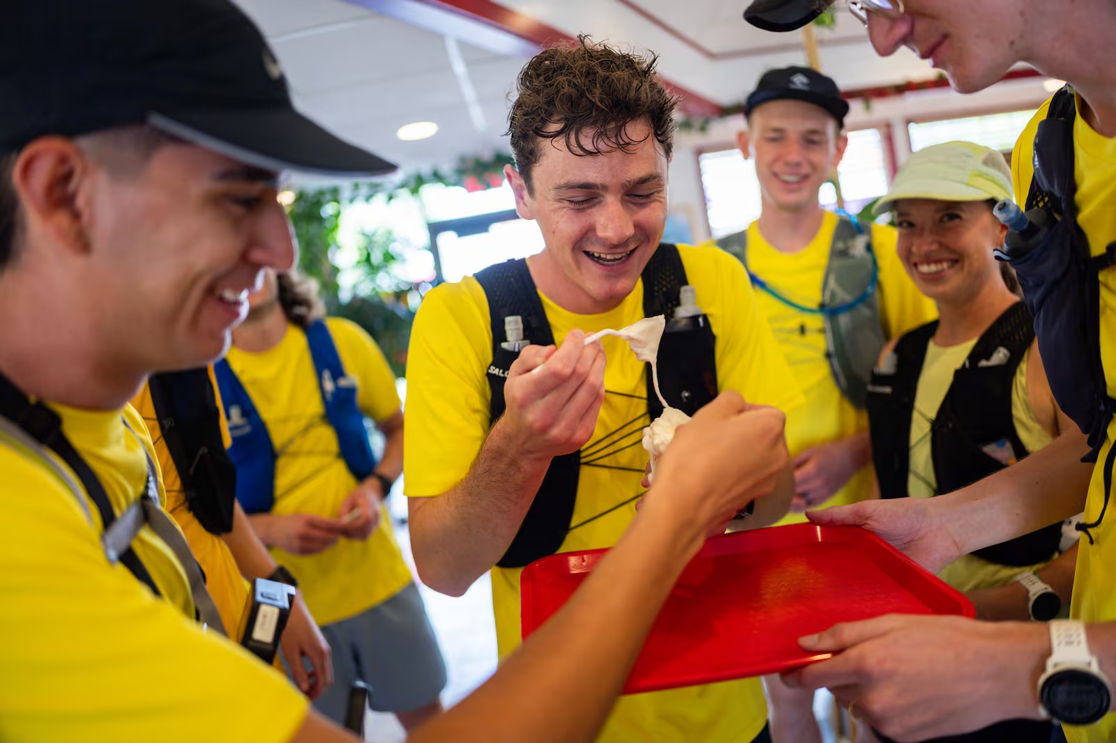 挑戰當日,8人穿上搶眼的黃色運動服,穿梭於桑迪市等快餐店密集的區域。據統計,他們全日累計跑了約50英里 (約80公里),相當於連續跑了接近兩場全馬。