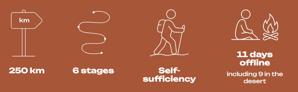 2026年賽事將在摩洛哥南部的撒哈拉沙漠腹地舉行,全程約 252 公里,分為六個階段進行。參賽者需在嚴苛的沙漠環境中,自行背負全程所需的食物、裝備及睡眠系統,主辦方僅提供限量水及帳篷外層。