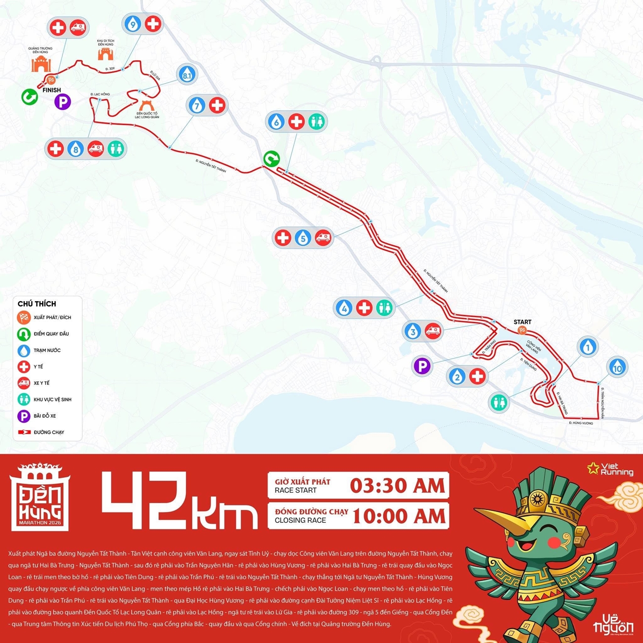 比賽在富壽省越池市,位於越南的城鄉交界;設有五個距離,包括前一天在星期六舉行的1.5km兒童跑,並不設計時和名次;另外還有6km、10km、半馬拉松和全馬拉松。全場總名次和年齡組別也分別設有獎金,鼓勵跑手爭取好成績!