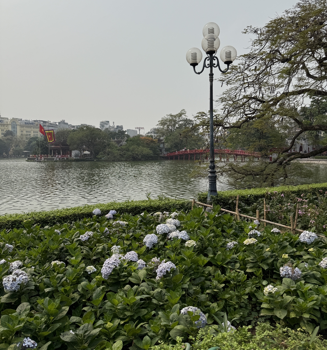 越南市區另一最有名的景點 – 還劍湖。傳說將軍黎利(Lê Lợi)得神龜贈送「順天劍」打敗明朝軍隊、建立後黎朝。戰後,黎利在湖上泛舟時將寶劍歸還給神龜,故名還劍湖。