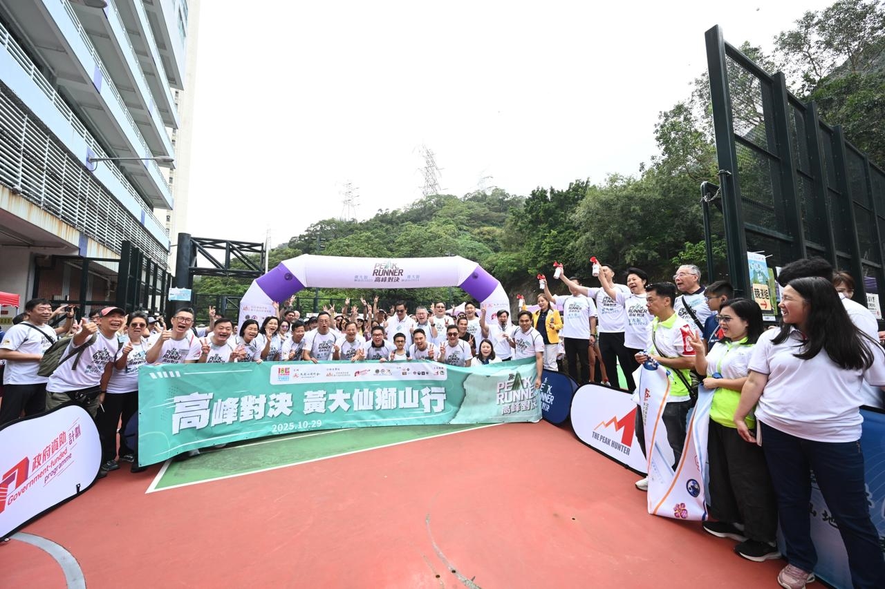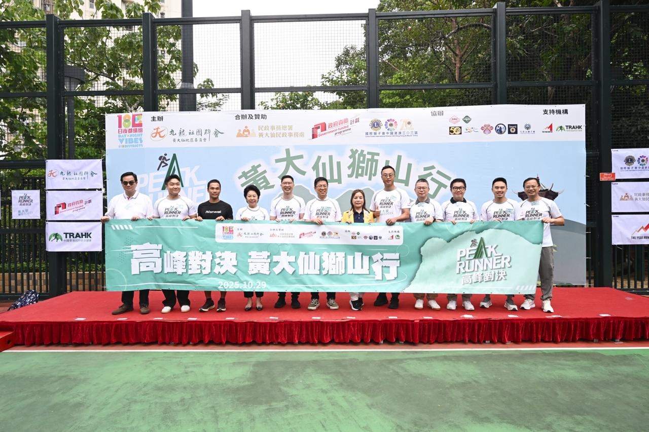 「高峰對決黃大仙獅山行2025」越野跑活動,於10月29日在慈雲山開跑。這場由九龍社團聯會黃大仙地區委員會主辦、黃大仙民政事務處及國際獅子會中國港澳三〇三區合辦的盛事,恰逢重陽佳節,既延續「登高祈福、親近自然」的傳統民俗,又注入現代運動活力,吸引近800名市民共赴登高之約,現場氣氛熱烈。其中競賽組近300人同場較量,黃護然奪男甲組冠軍,亦是全場最佳成績,女丙組冠軍鍾焯琳則拿下女子組最快記錄。