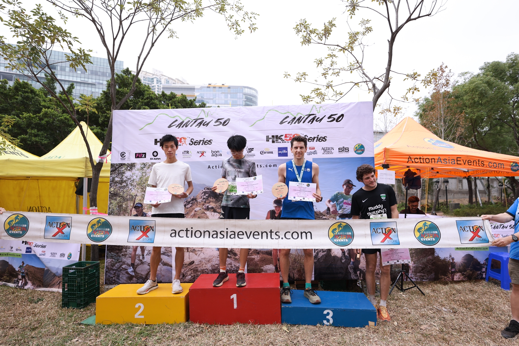 本地跑手陳家強 (T8) 剛在近期 HK50 系列賽首戰奪冠,同時也是 2023 年大嶼 50 的季軍。他原自信能保持領先並奪冠,但或許高估了自己從兩週前另一場比賽中恢復的速度。最終陳家強以 6 小時 16 分 47 秒獲得男子 50 公里組季軍,他表示:「今天起步時天氣非常悶熱潮濕。前 32 公里相當具挑戰性,在抵達石壁區域前,我與 Jeff 和 Santosh 一直處於激烈競爭中。鳳凰山和大東山的爬升相當艱難,因為它們位於賽程後段,體感非常明顯。賽道路標非常清晰,非常感謝動感亞洲。」